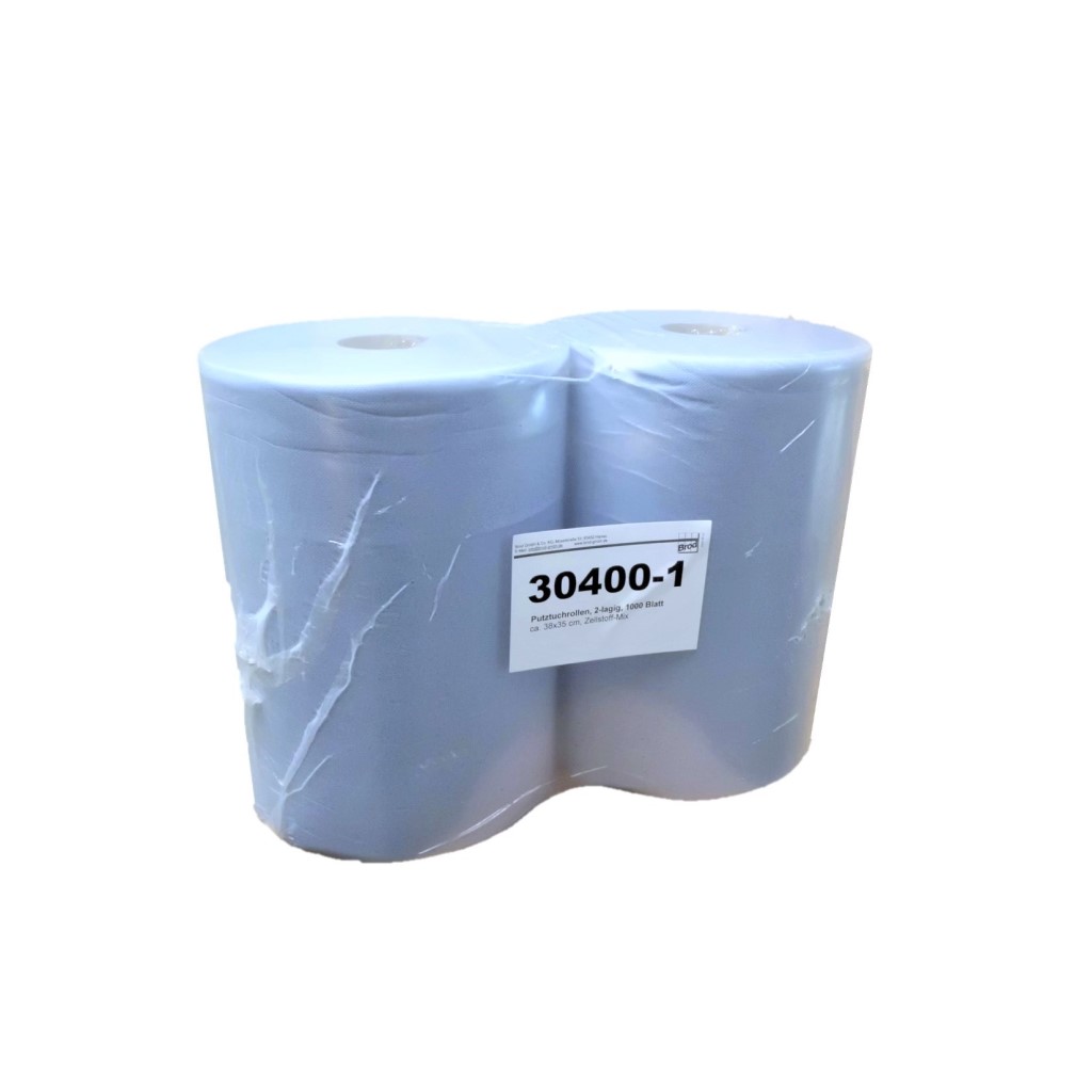 Putztuchrolle Huchtemeier, 1000 Blatt, 2-lagig, blau, Zellstoff, 36×35 cm, 350 m, perforiert, 2 Rollen (Art. 30400-1-S)
