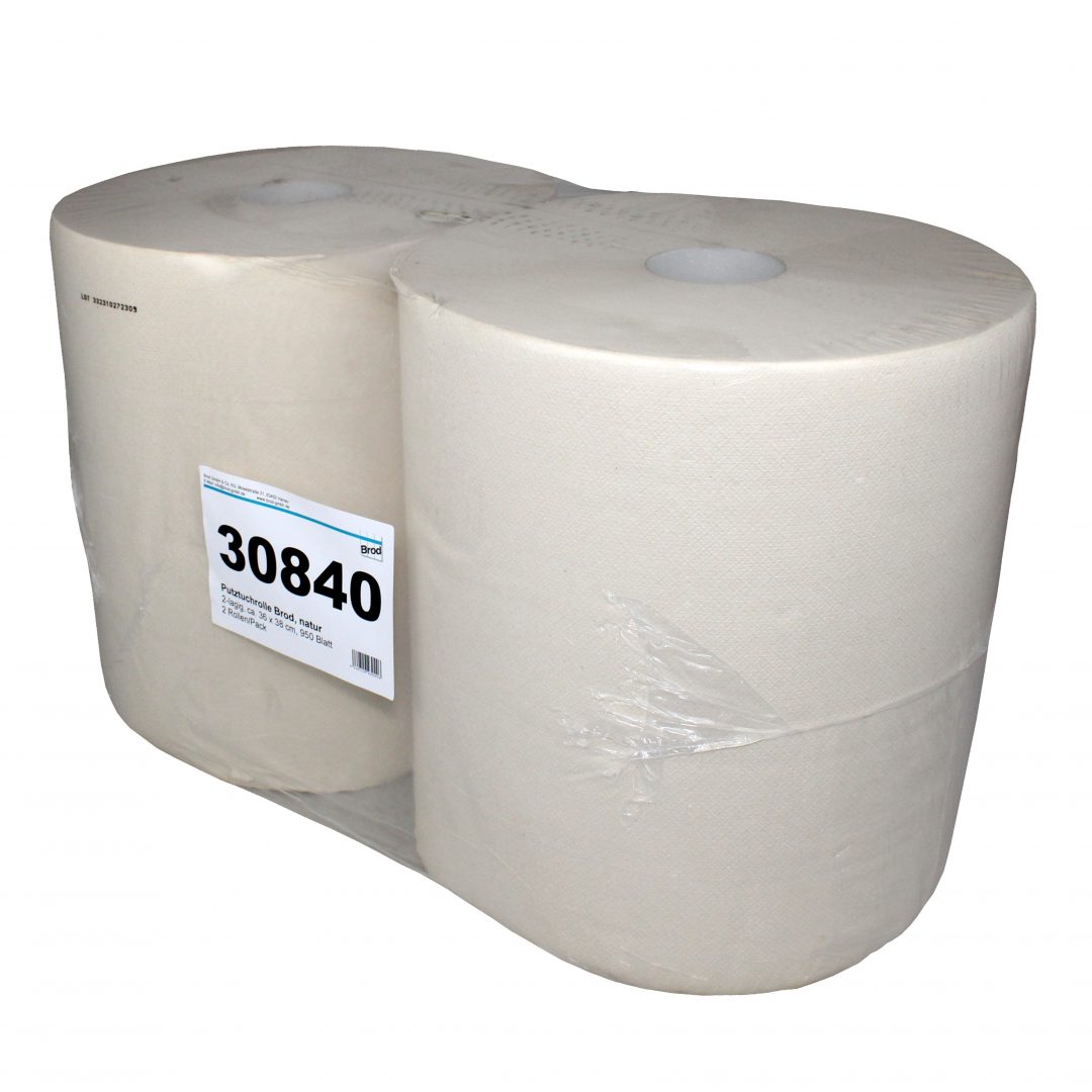 Putztuchrolle Brod 950, 950 Blatt, 2-lagig, natur, 36×38 cm, 342 m, perforiert, 2 Rollen (Art. 30840)