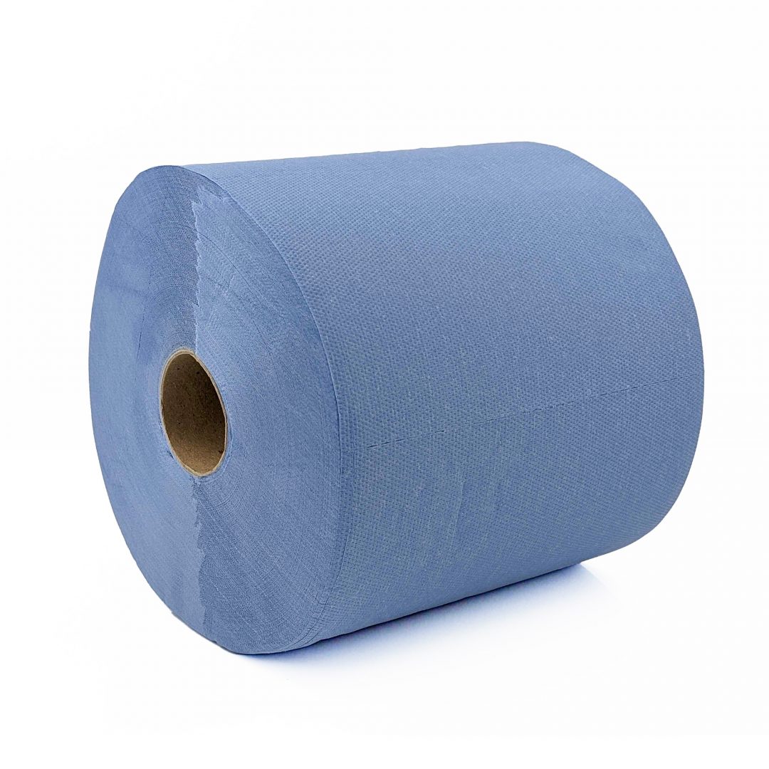 Putztuchrolle Huchtemeier, 500 Blatt, 3-lagig, blau, Zellstoff, 22×35 cm, 175 m, perforiert, 2 Rollen (Art. 30846-1)