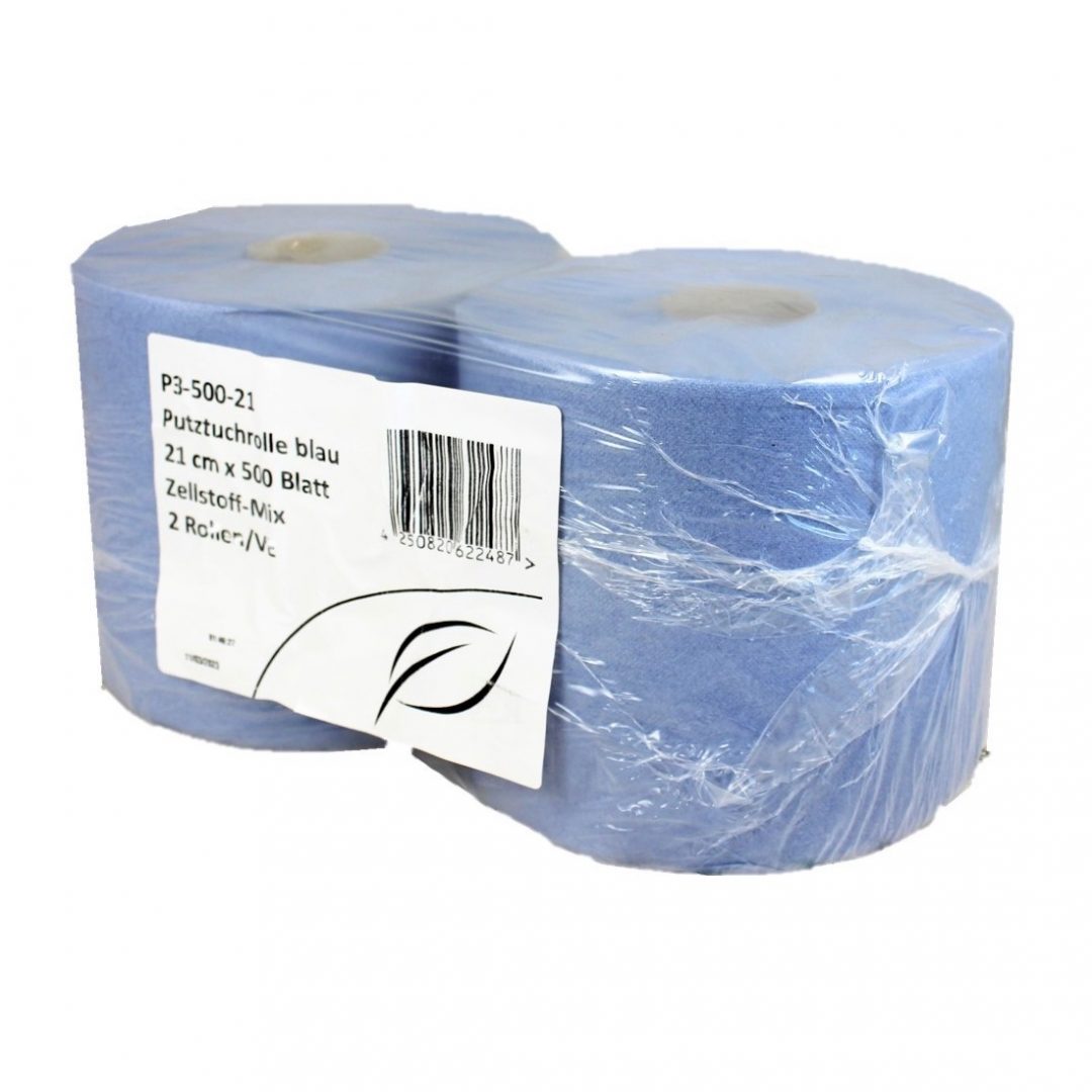 Putztuchrolle Huchtemeier, 500 Blatt, blau, Zellstoff, 22×35 cm, 175 m, perforiert, 2 Rollen (Art. 30817-1)