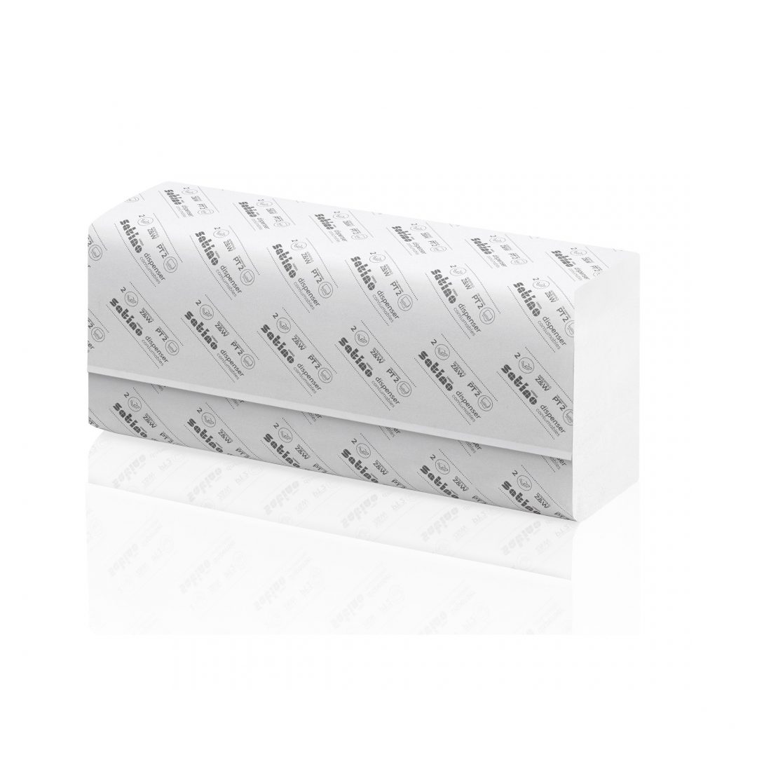 Falthandtuch Satino Comfort, 2-lagig, weiß, Recyclingpapier (RC), V-Falz, 25×23 cm, 3200 Tücher (Art. 90488)
