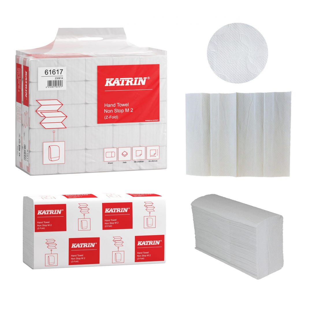 Falthandtuch Katrin Non Stop M, 2-lagig, weiß, Recyclingpapier (RC), N-Falz, 24×24 cm, 4000 Tücher (Art. 90563)