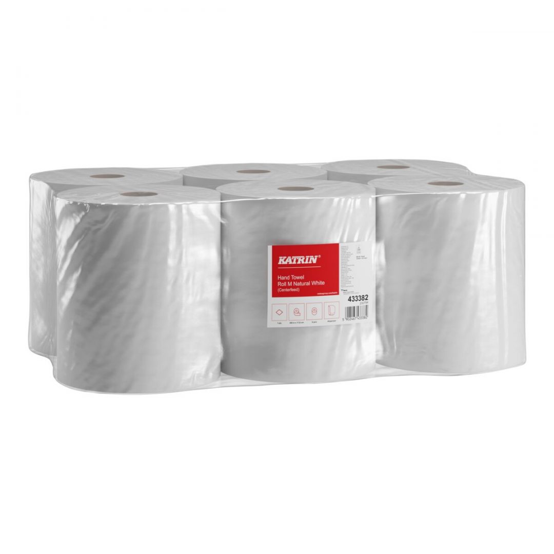 Handtuchrolle Katrin Centerfeed M 300, 1-lagig, naturweiß, Recyclingpapier (RC), 17,8 breit, 300 m, unperforiert (Art. 90470)