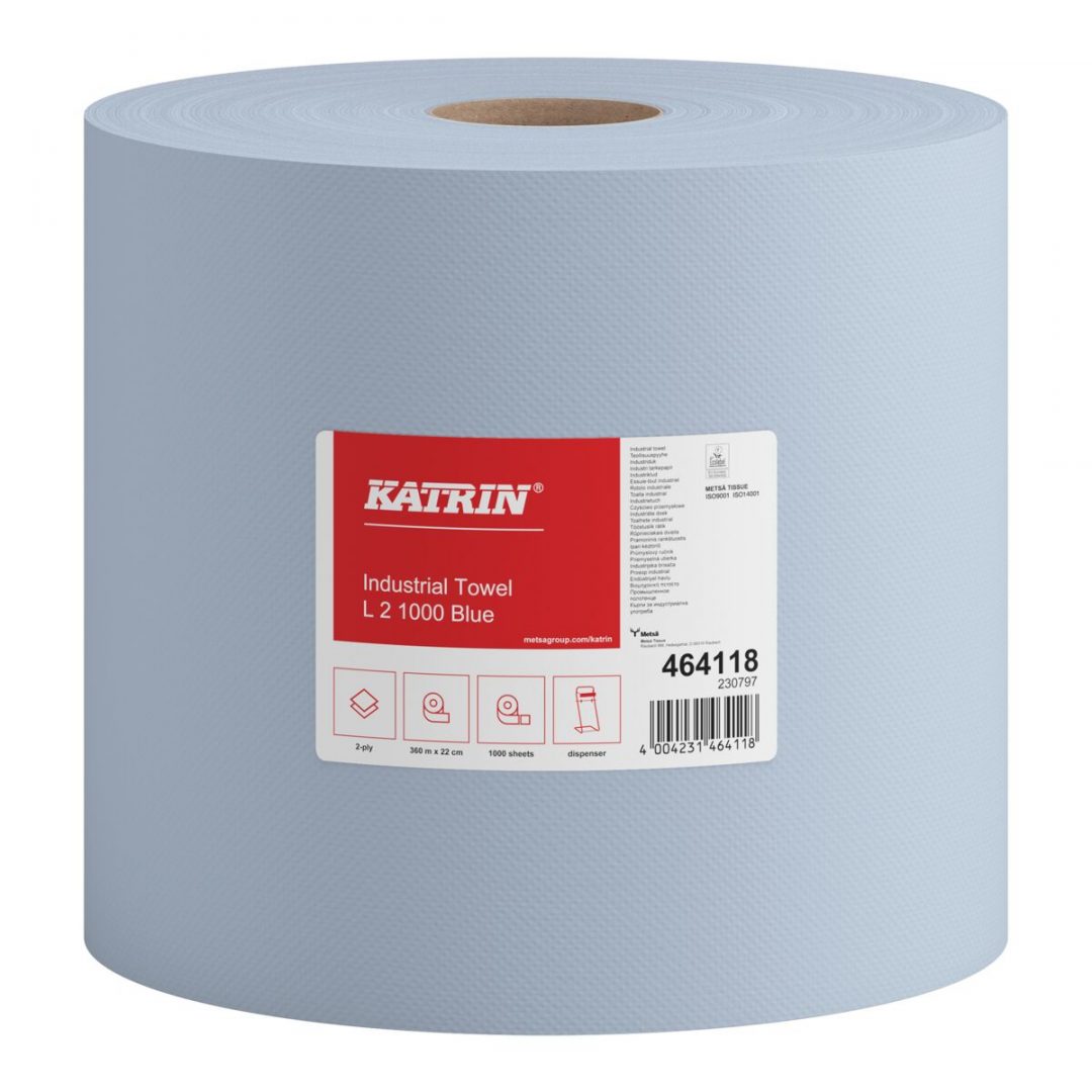 Putztuchrolle Katrin L, 1000 Blatt, 2-lagig, blau, Recyclingpapier (RC), 22×36 cm, 360 m, perforiert, 2 Rollen (Art. 30421)