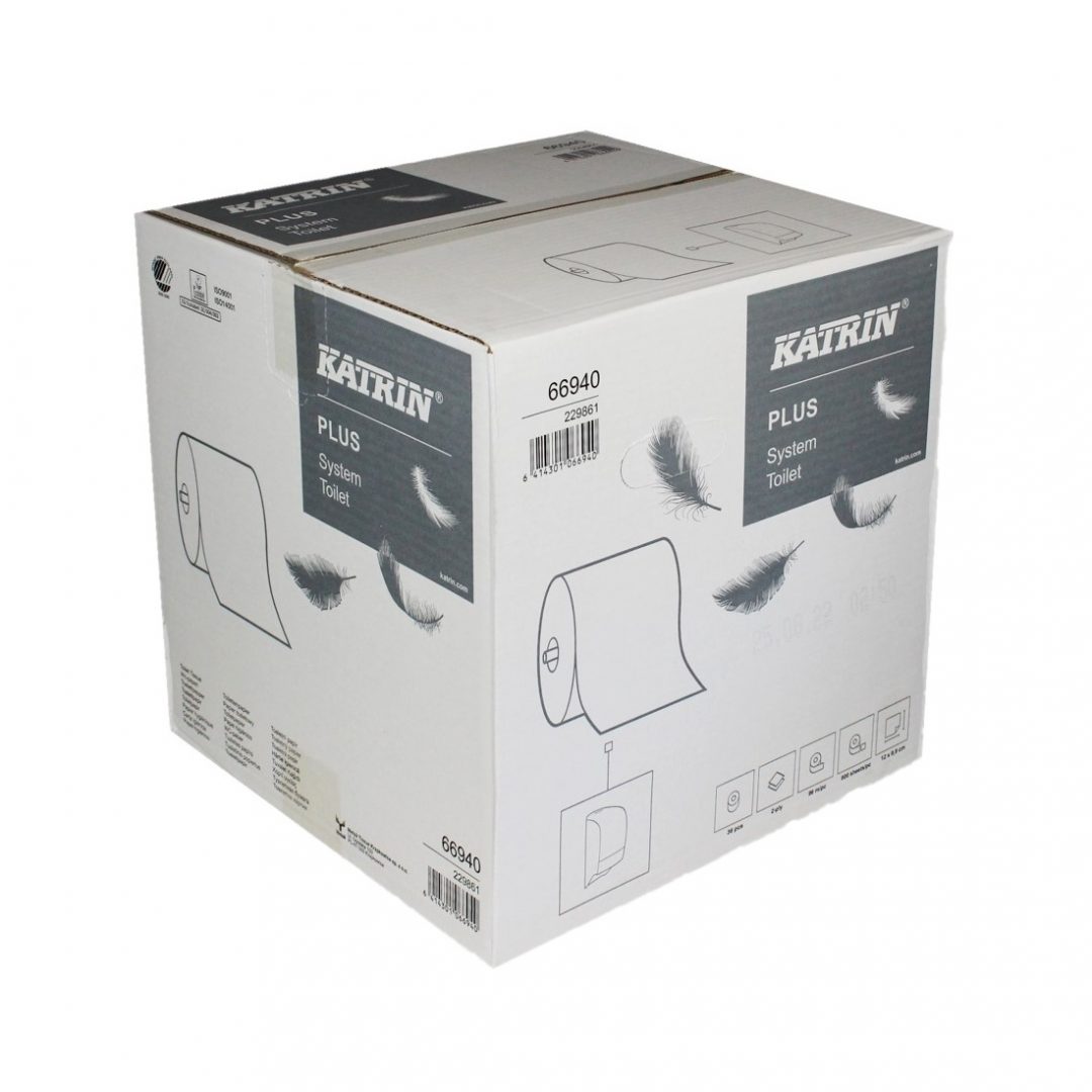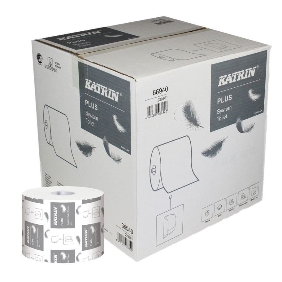 Toilettenpapier Katrin Plus System, 2-lagig, weiß, Zellstoff, 800 Blatt, 36 Rollen (Art. 90654)